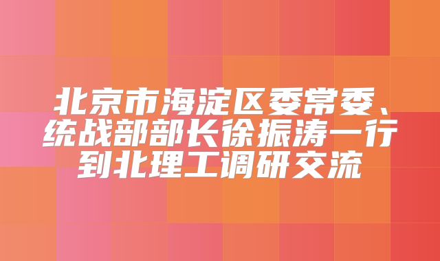 为进一步深化校地合作,加强“海校联”工作品牌建设,推动校地统战工作提质增效,11月1日,北京市海淀区委常委、统战部部长徐振涛一行到校调研交流。学校党委副书记包丽颖出席调研活动。会议由党委统战...