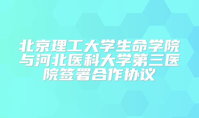 10月31日上午,北京理工大学生命学院与河北医科大学第三医院合作协议签约仪式在中关村校区2号楼133会议室举行。北京理工大学党委常委、副校长邹美帅,河北医科大学党委常委、副校长、河北医科大学...